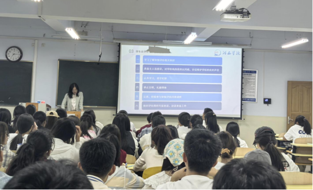 为积极响应学校迎接本科教育教学审核评估的号召,9月22日-25日学院49个在校班开展了“我为评估添光彩,我为评估作贡献”主题教育班会。