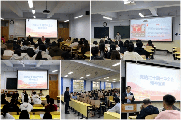 近日,学院举行多场二十届三中全会精神宣讲会。学院负责人及学院各专业、各年级的学生参加。