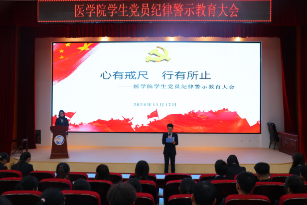 为进一步教育引导广大学生党员学纪、知纪、明纪、守纪,加强校级校规教育,提高学生党员的先进性和纯洁性,切实增强纪律意识,提高党性修养。11月17日,学院开展了“心有戒尺,行有所止”学生党员纪律警示教育大会,学院各学生党支部书记、全体在校学生党员、入党积极分子参加。
