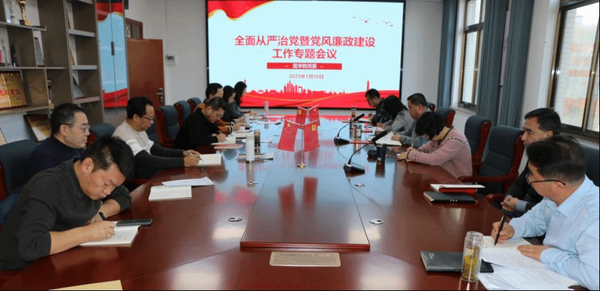 1月10日,学院在行政楼三楼会议室召开全面从严治党暨党风廉政建设工作专题会议,学院负责人、党委委员、科级干部、各党支部书记参加。