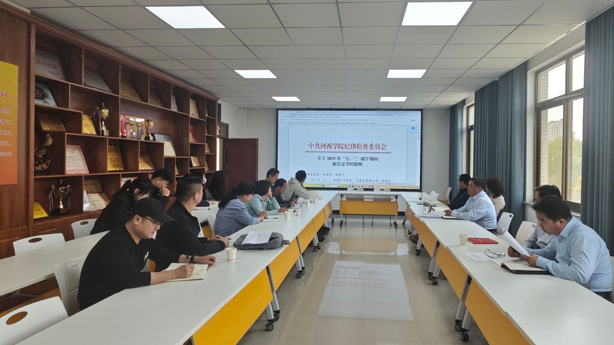 会上,集中学习了习近平关于加强党的作风建设的重要论述、中央八项规定及其实施细则精神;通报了师德失范典型案例,传达学习了中共河西学院纪律检查委员会《关于2025年“五一”、端午节期间廉洁过节的提醒》,对“五一”、端午节期间廉政警示教育和近期师德师风教育进行了安排部署。