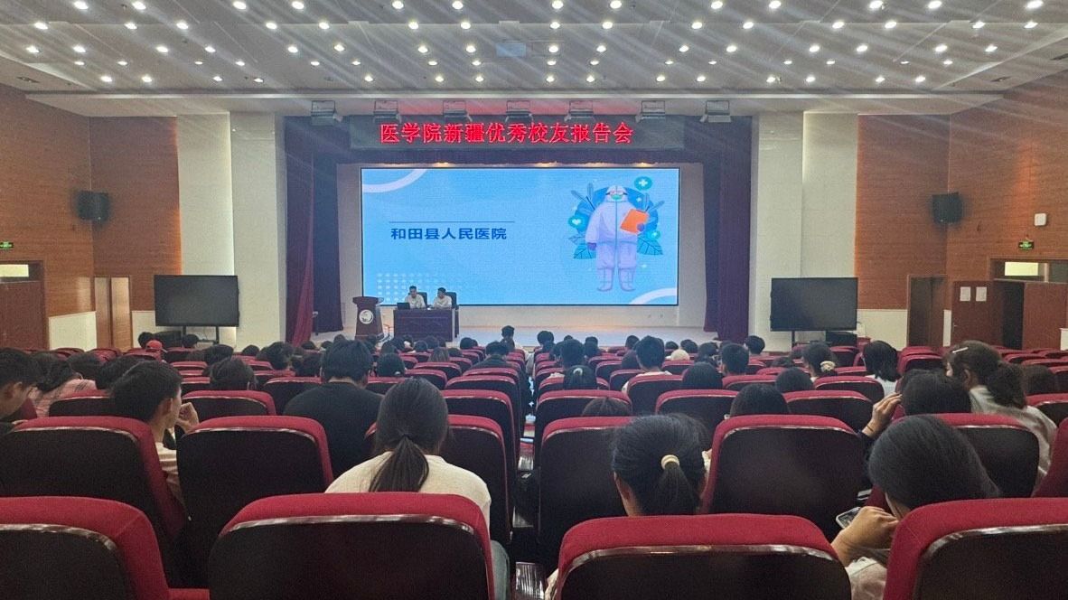 李高帅、柳生分别以“我的第二故乡-新疆”和“援疆医疗工作的经验与感悟分享”为题,结合个人学习和工作经历,讲述了在新疆的工作契机、心路历程以及当地的地理环境、人才政策、发展机遇、工作环境等情况,介绍了所在医院的基本情况、信息化建设成果、医疗优势等,勉励同学们珍惜大学时光,扎实学好专业知识,提升自身的综合素质,尽早做好职业规划。